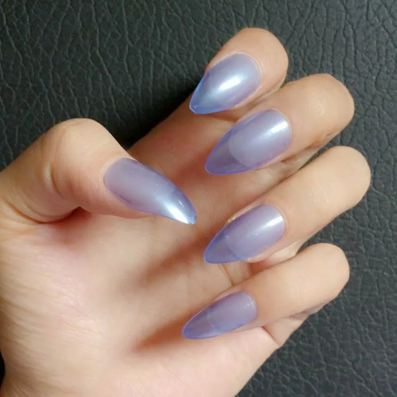 Candy Fake Nail Tips Clear Transparent Blue Stiletto False Nail